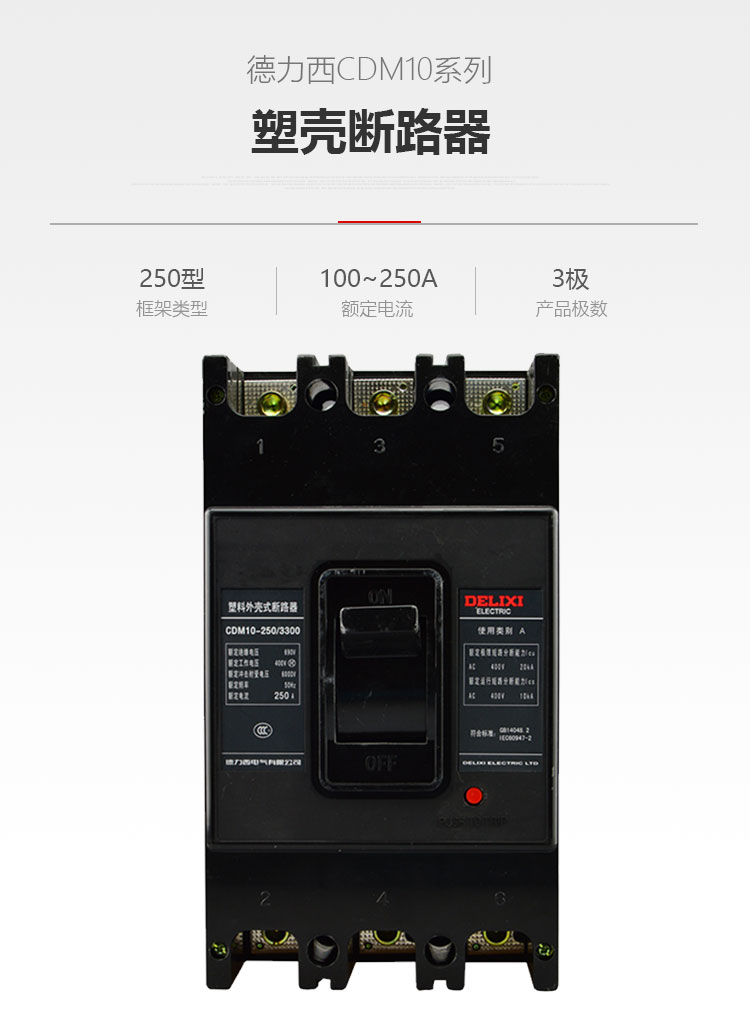 德力西塑殼斷路器 CDM10-250/3300 150A 250A塑殼斷路器 黑色動力型塑殼空氣開關 |