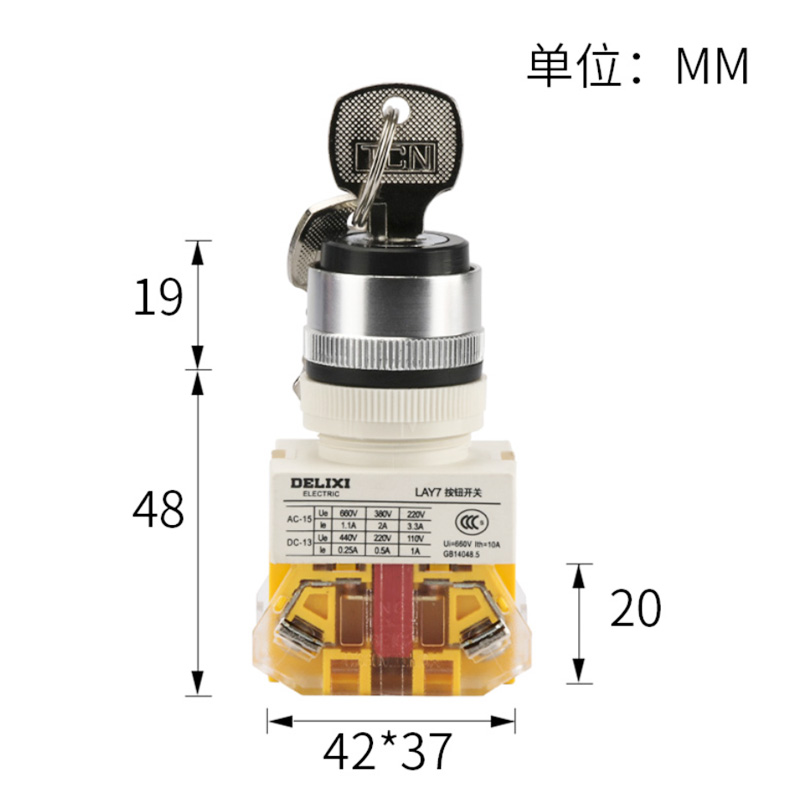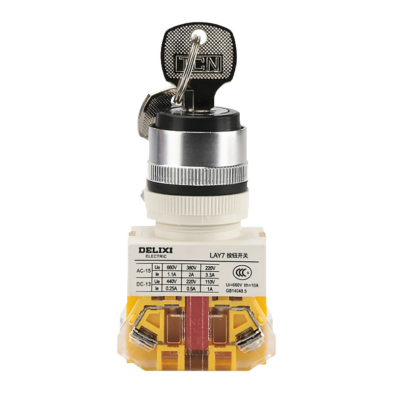 | 德力西按鈕開關(guān) LAY7-11Y/2 兩擋帶鑰匙旋鈕 一常開一常閉 控制按鈕 開孔尺寸22MM | |||
