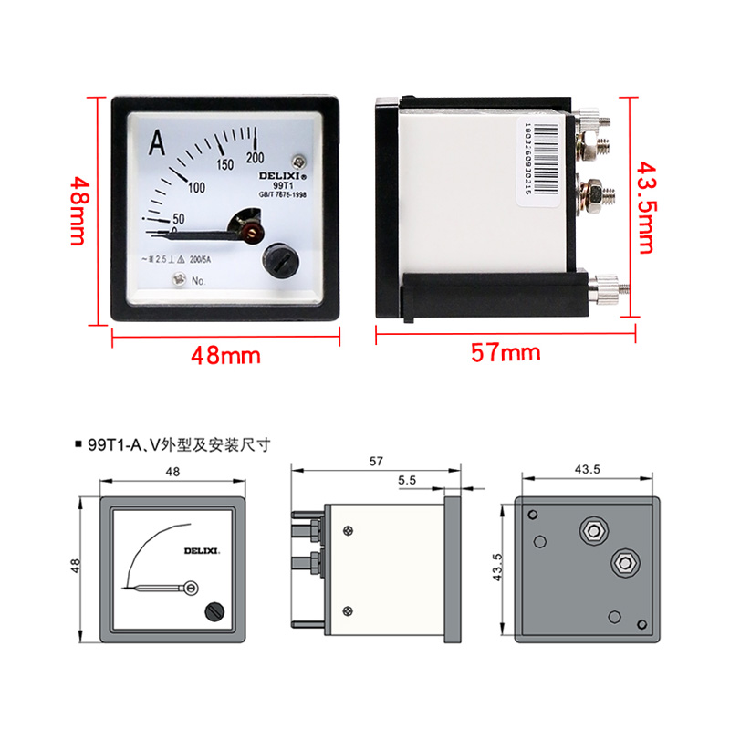 定制 德力西電測量儀表99T1-A電流表 固定式 模擬指示 機械式電流表 可定制電流 |