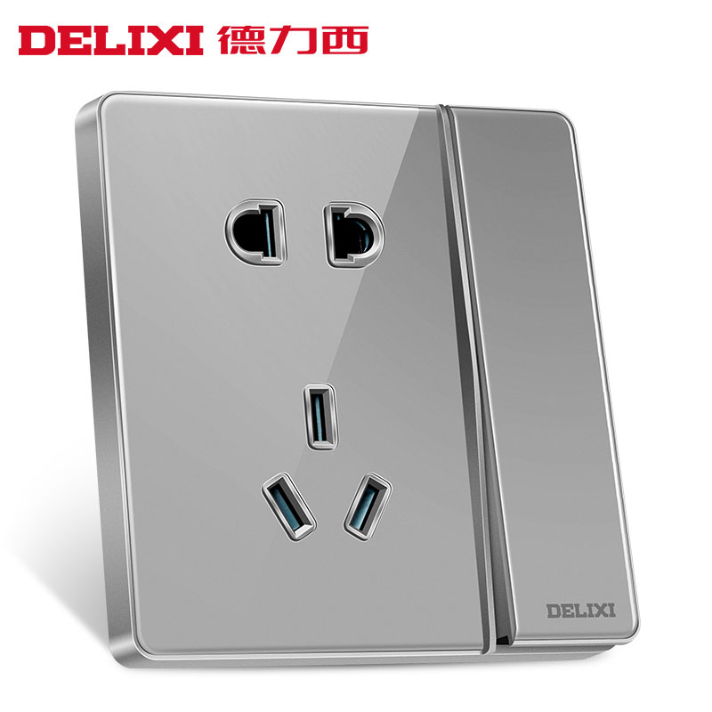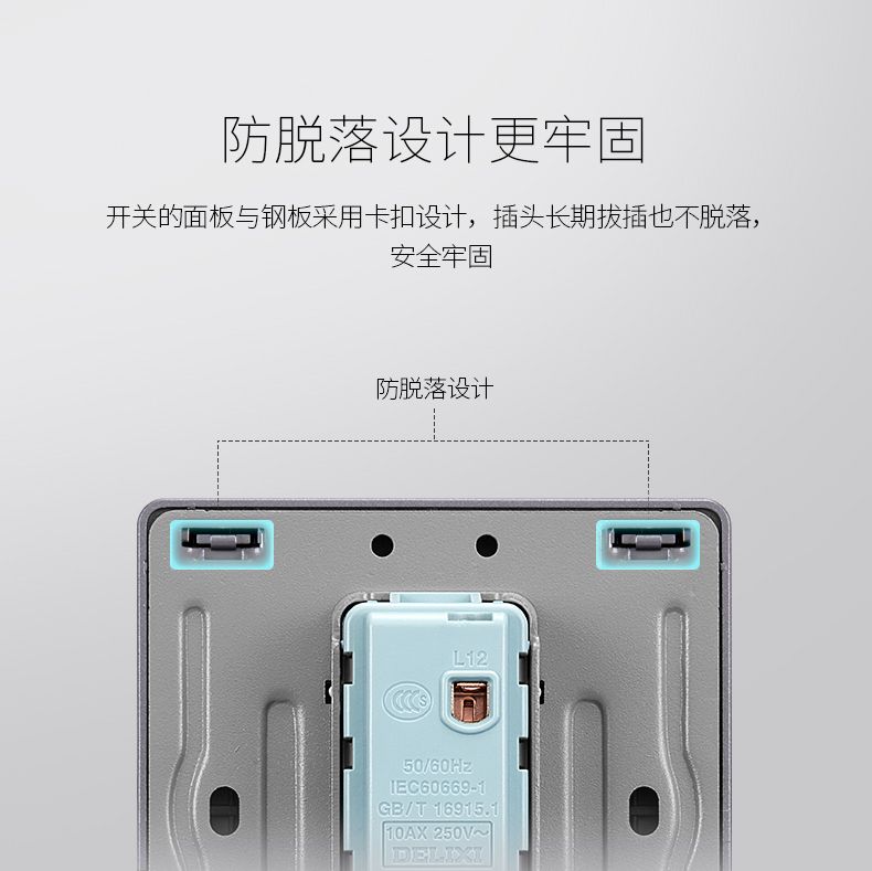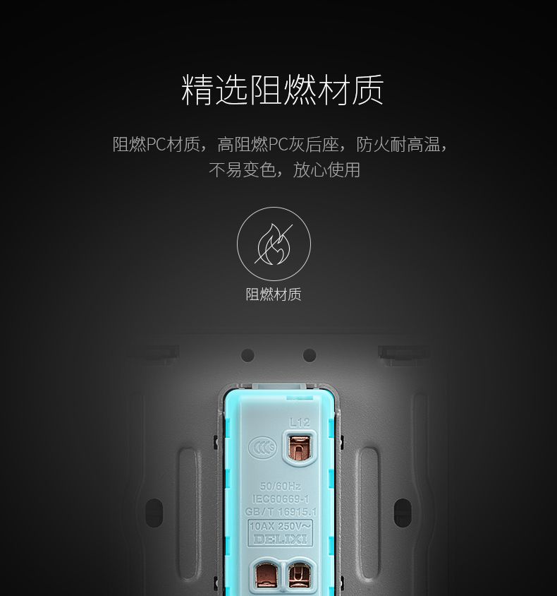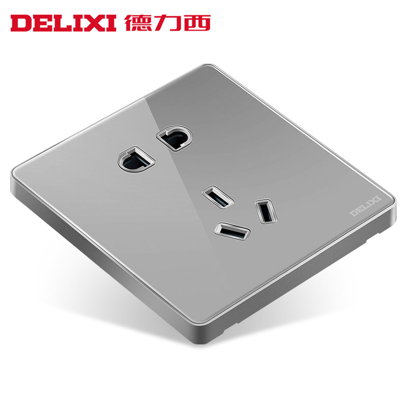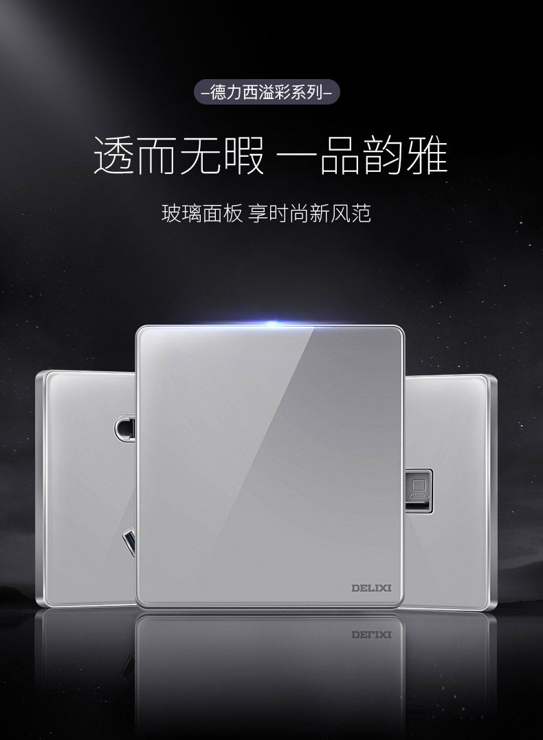 德力西881玻璃星空灰墻壁開(kāi)關(guān)插座 星空灰無(wú)邊框大板玻璃鏡面五孔USB一開(kāi)二開(kāi)三開(kāi)雙控多控開(kāi)關(guān)插座