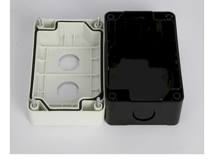 德力西2位按鈕盒 兩位防水按鈕開關(guān)盒 急停開關(guān)控制盒 指示燈防水盒 2孔22mm |