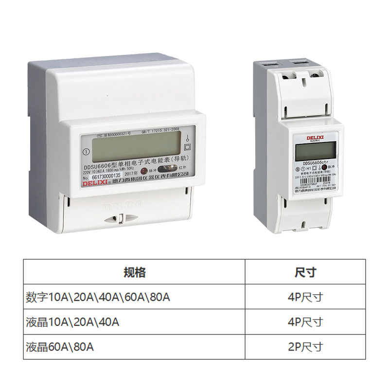定制 德力西DDSU6606單相導軌式電表 卡槽式單相電表 額定電流10A/20A/40A/60A/80A 部分規(guī)格定制 |
