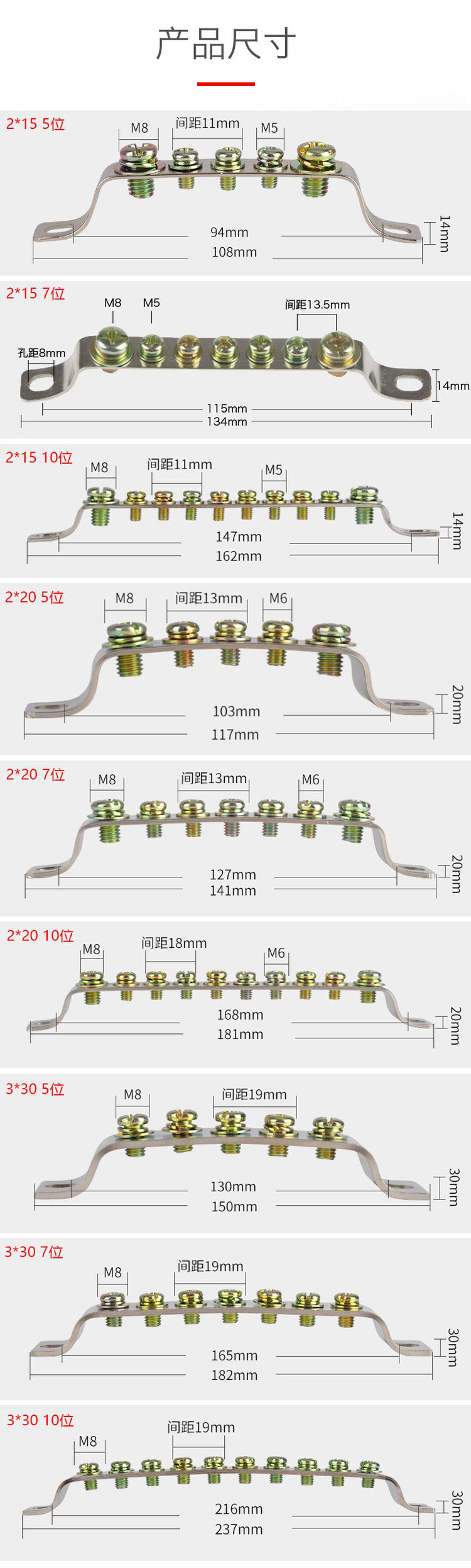 德力西接地排 德力西接地線銅排 鍍鎳接地排 2*15/2*20/3*25/3*30 5位/7位/10位地排 |