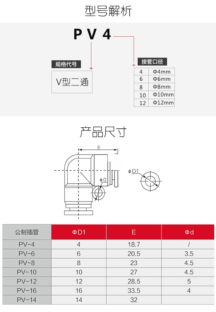 德力西PV氣動接頭 德力西L型兩通接頭 L型二通氣動接頭 規(guī)格4mm~16mm |
