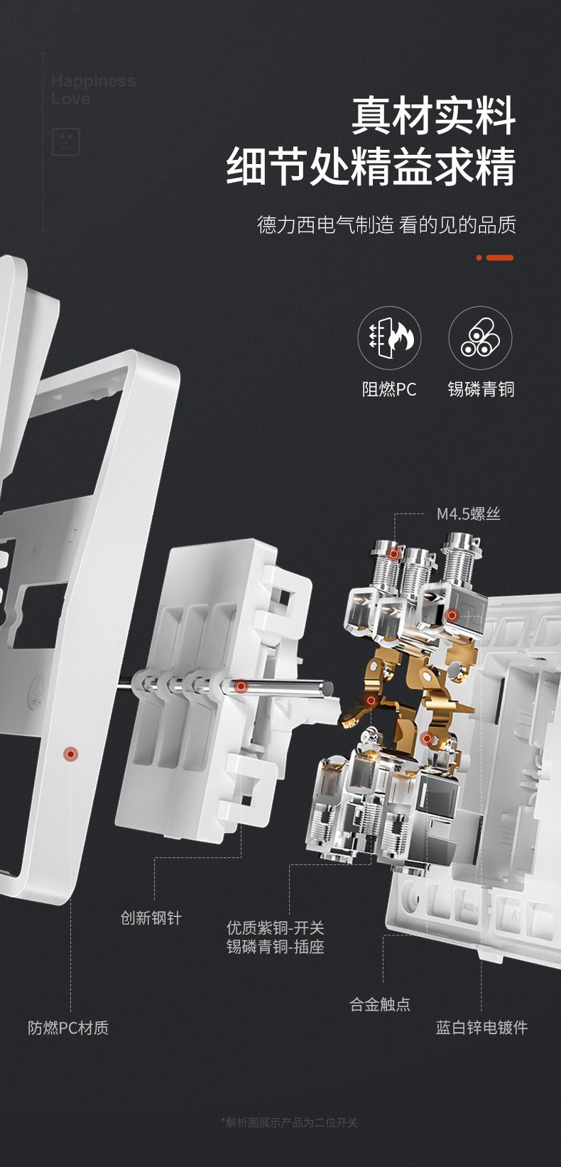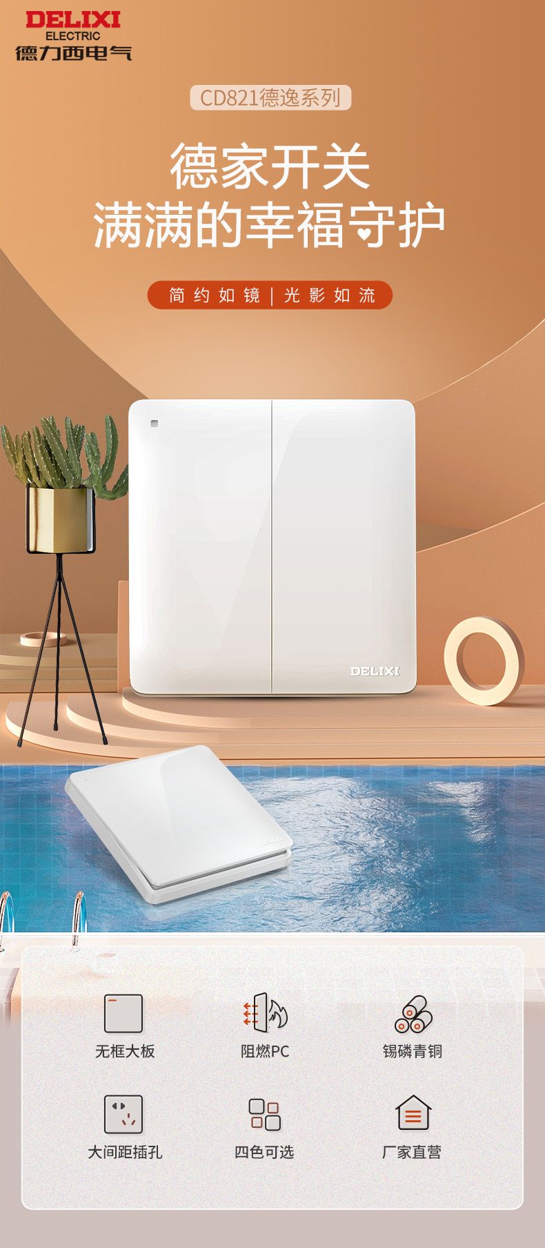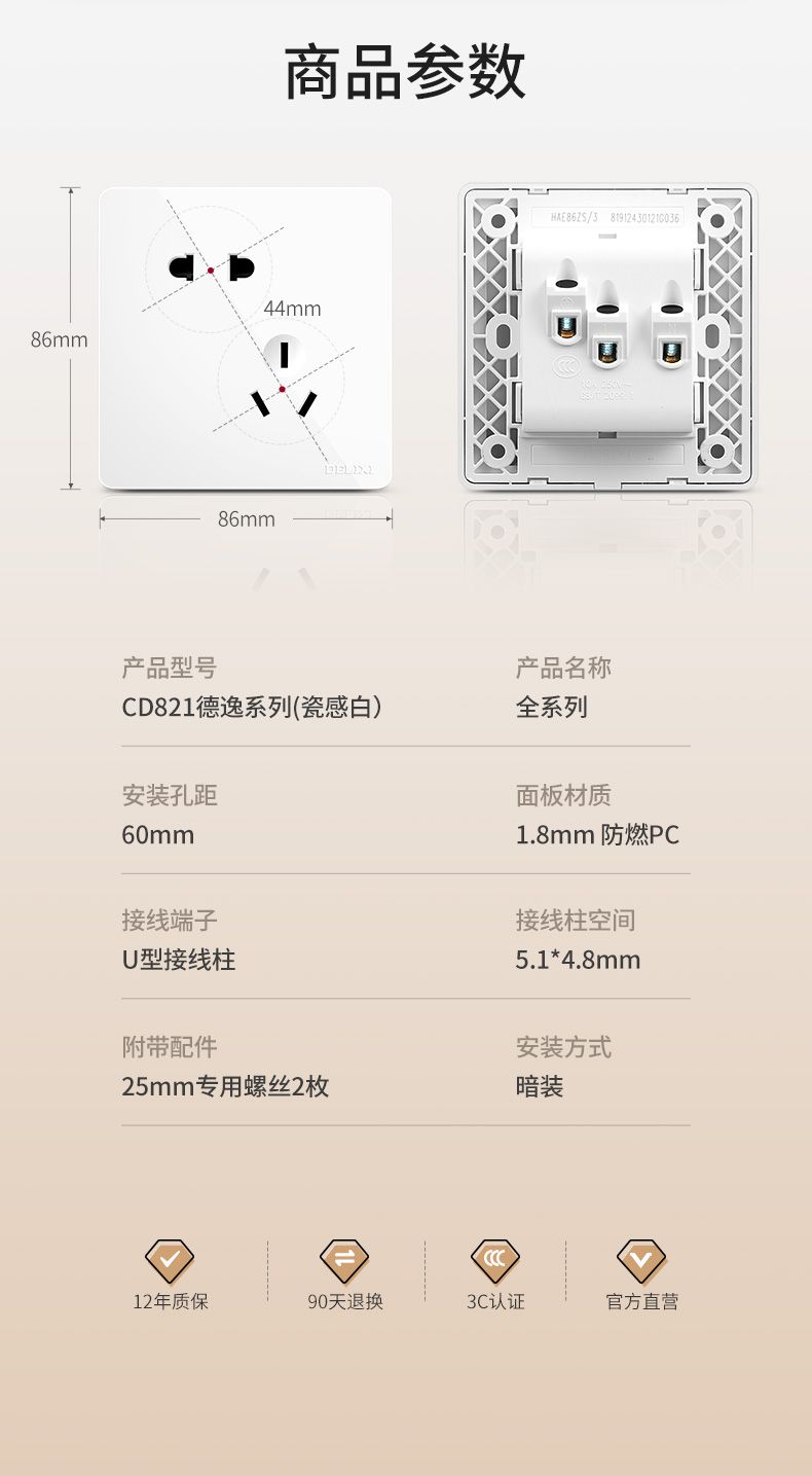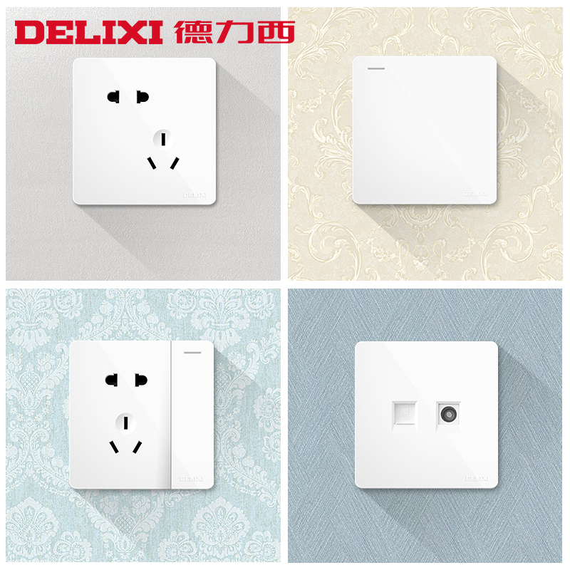 德力西217美學大板時尚白 純平大板升級款暗裝墻壁開關 斜五孔10A插座一開二開三開四開 |