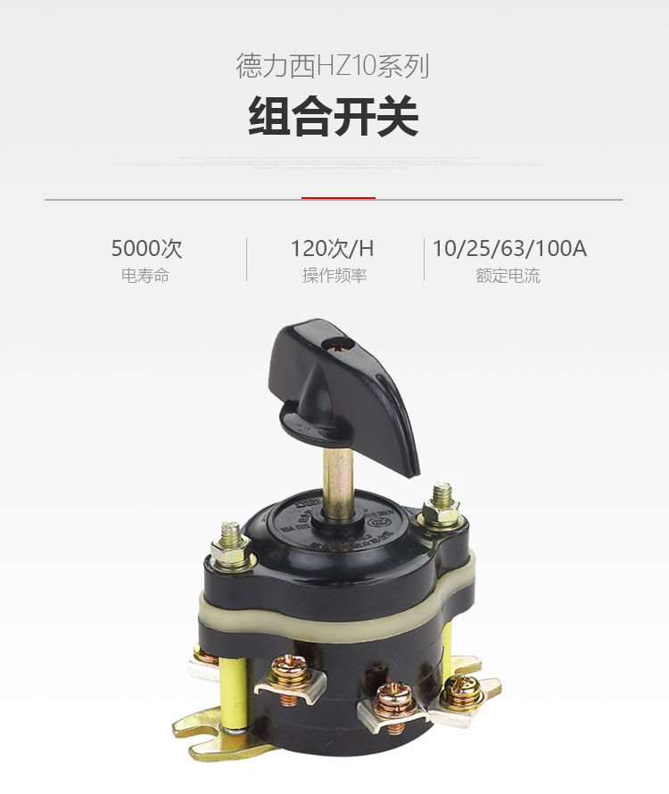 德力西HZ10組合開關(guān) 10/3 25/3 63/3 板前安裝方式 6個接線柱 轉(zhuǎn)換開關(guān) 振動棒開關(guān) |