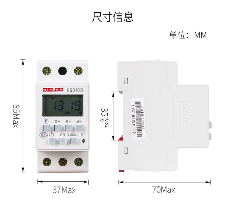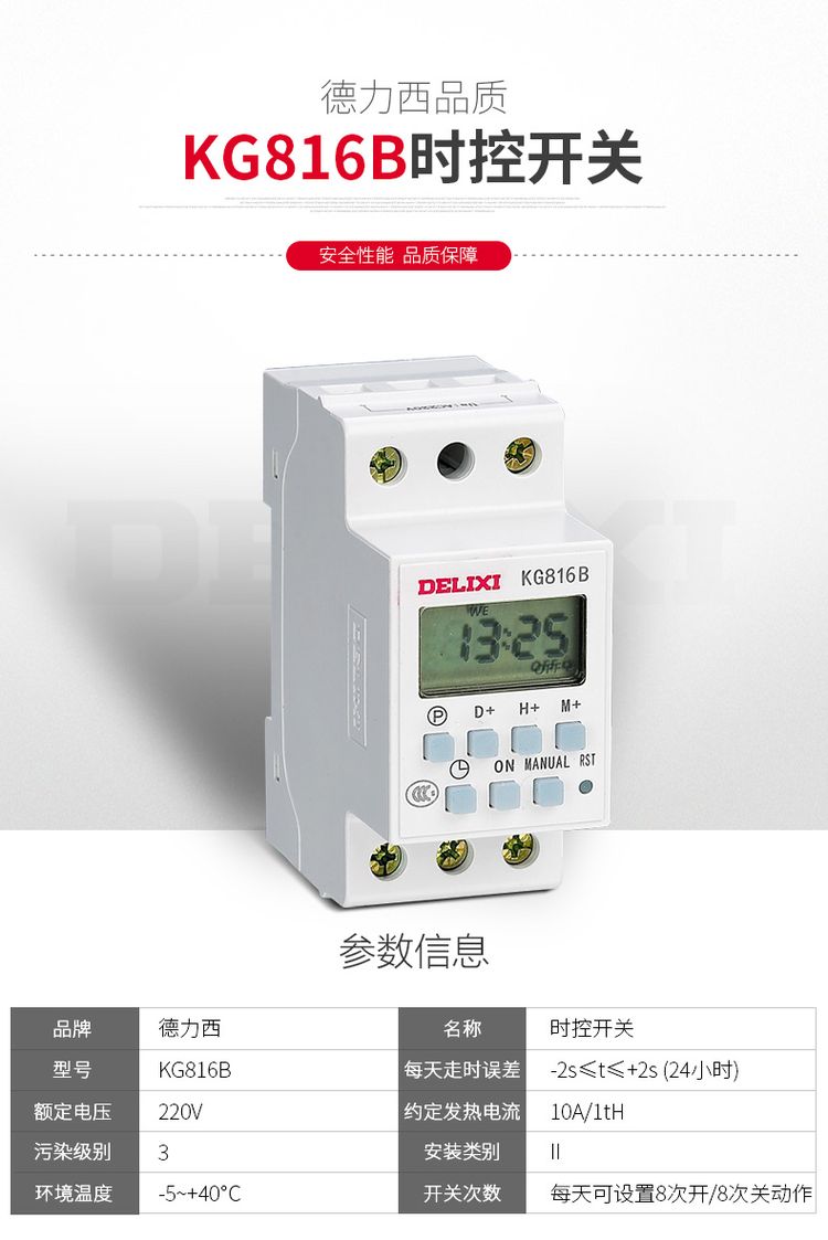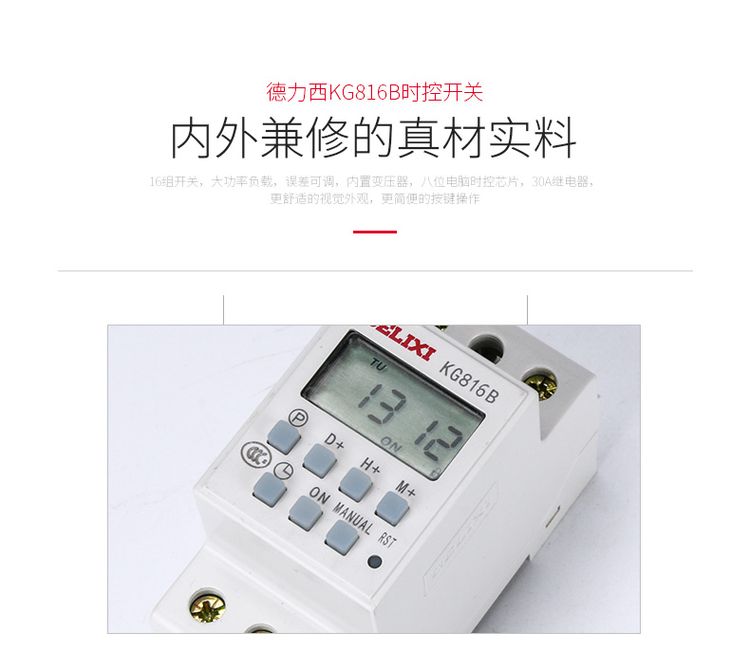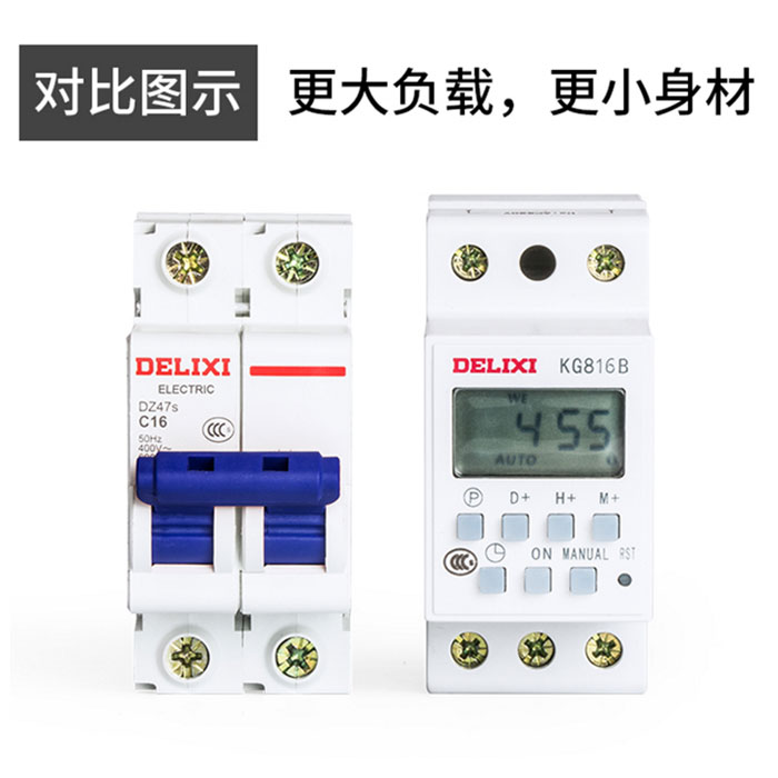 德力西導(dǎo)軌式時(shí)控開關(guān)KG816B/AC220V 卡槽式安裝 尺寸相當(dāng)于DZ47S 2P尺寸 可安裝在PZ30配電箱中 |