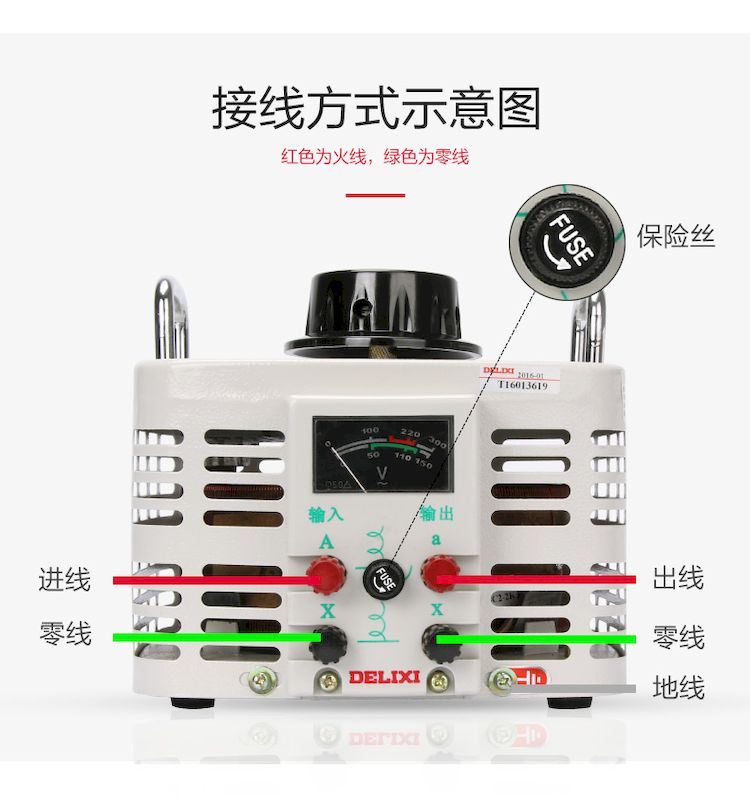 德力西單相調(diào)壓器 TDGC2-3KW/3KVA/3000W 輸入電壓220V 可調(diào)電壓0-250V 最大電流12A |