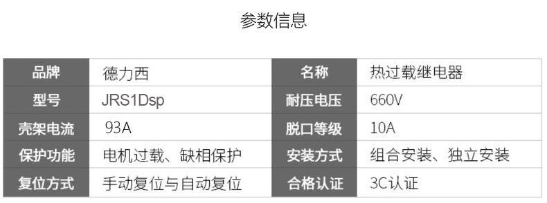 德力西熱過載繼電器 JRS1Dsp-93 電流37A-93A 熱過載保護(hù) 熱繼 適用于CJX2s系列交流接觸器 |